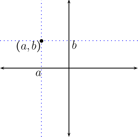 Un elemento de \(\mathbb{R}^{2}\text{,}\) es un par ordenado \((x,y)\text{,}\) donde \(x\) es la primera coordenada o abscisa e \(y\) es la segunda coordenada u ordenada del punto \((x,y)\)