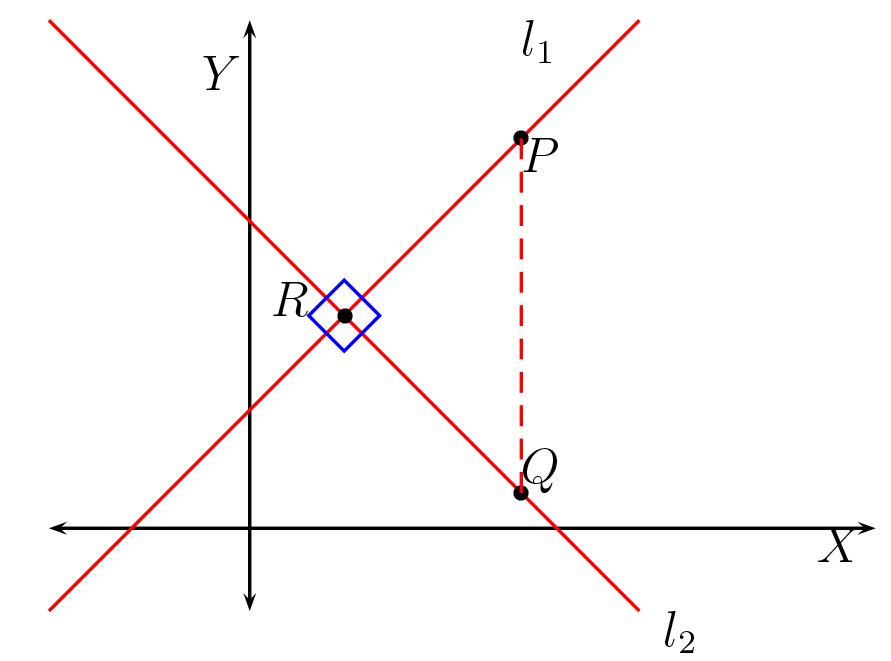 Calculemos \(Q=(x,y)\) el punto de intersección de \(l\) con \(l_{1}\)