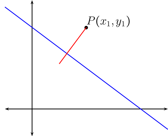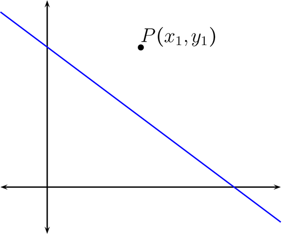 Sea \(P = (x_{1}, y_{1})\in \mathbb{R}^{2}\) y la recta cuya ecuación es