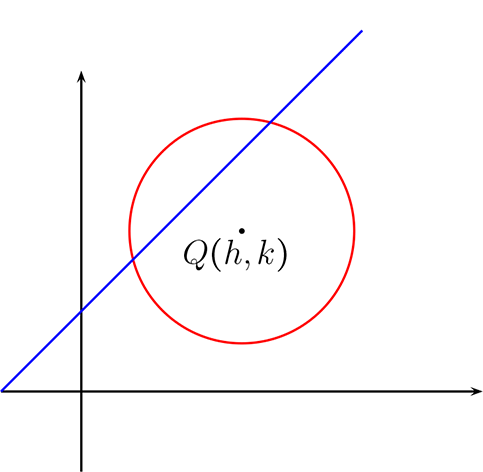 Sean \((x - h)^{2} + (y - k)^{2} = r^{2}\) una circunferencia de radio \(r\) y centro \(Q=(h,k)\) y la recta de ecuación \(l: Ax+By+C=0\text{.}\)