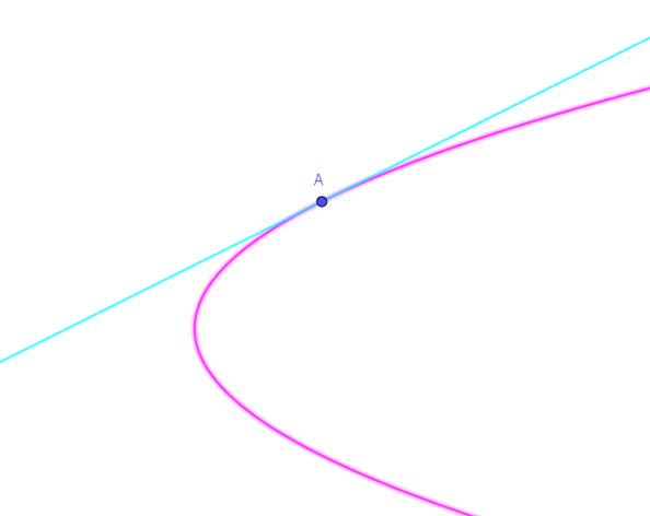 Observación: El concepto de recta tangente a una parábola en un punto perteneciente a ella, es una recta que pasa por el punto y todos los otros puntos de la parabola perteneces al mismo semiplano que se obtiene con esta recta. Recuerde que toda recta divide al plano en dos semiplano.
